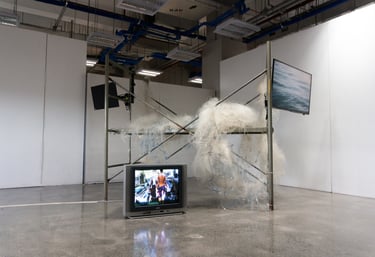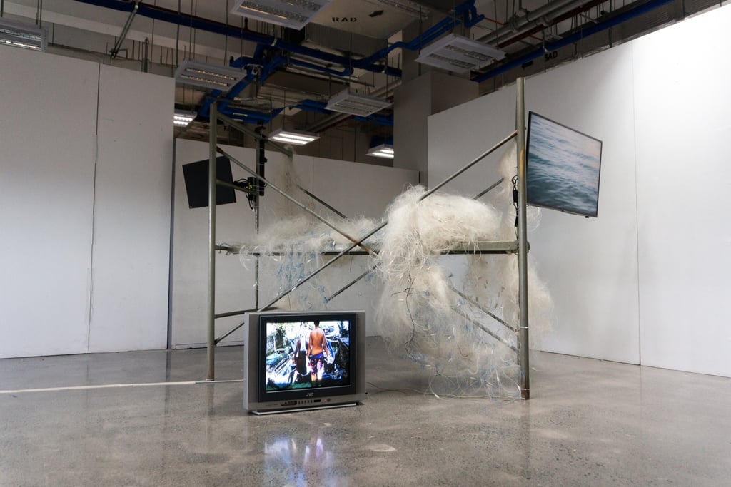 Installation view of "Nang sumabit ang bangka sa lambat sa Laguna de Bay (When the boat got entangled in a fishing net in Laguna Lake)." 2025-present.